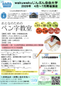 wakuwakuじんぶん自由大学🏫🏫【おとなのためのペン字教室】市内外問わず参加可能です。お申込みお待ちしております。 今からでも遅くない!基礎から学び、実用書が書けるまで丁寧に指導します。応用編として「筆ペンで書く百人 […] -