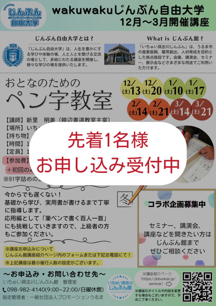 応用編として「筆ペンで書く百人一首」にも挑戦していきますので、上級者の方もご参加ください。
